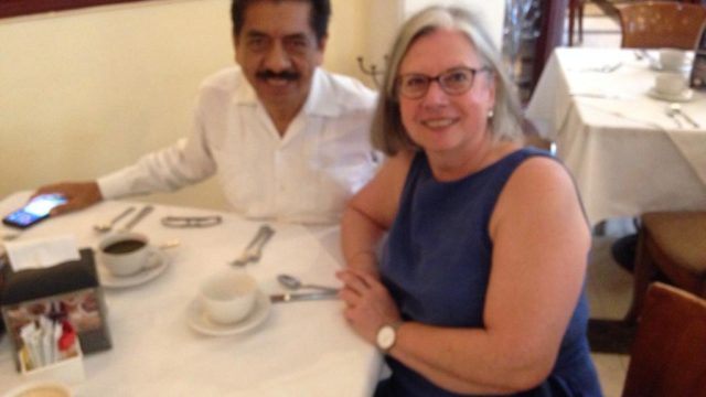 La doctora Dominique Gay-Sylvestre se entrevista con el ingeniero José Antonio Mendoza García, Presidente de la CANACO en Veracruz, marzo de 2019.