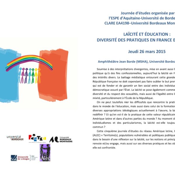 Journée d’études organisée par l’ESPE d’Aquitaine-Université de Bordeaux –  CLARE EA4198–Université Bordeaux Montaigne