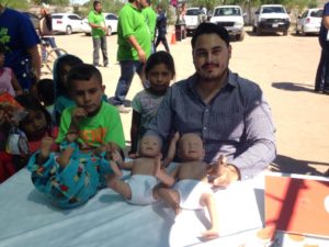 Jóvenes del Instituto de la Juventud de Hermosillo enseñando los efectos de las adicciones en los bebes. Jornada de prevención en el Poblado 14/04/2019.