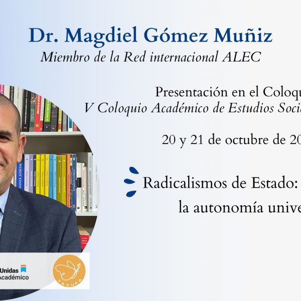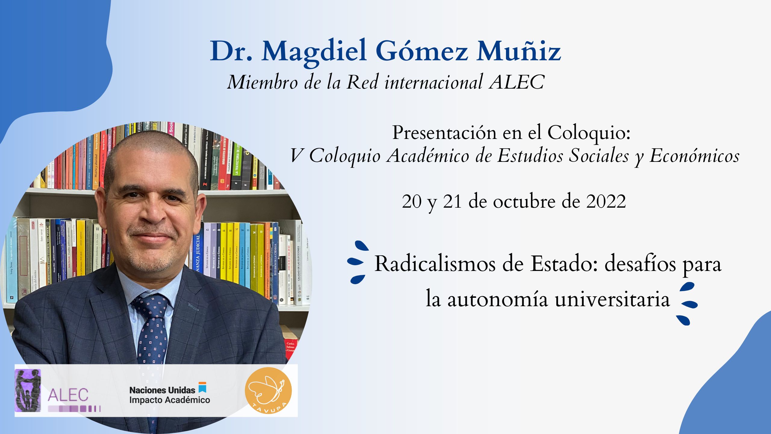Participación del Dr. Magdiel Gómez Muñiz, miembro de la Red internacional ALEC, en el V Coloquio Académico de Estudios Sociales y Económicos . (Universidad de la Guadalajara – Centro Universitario de la Costa (UdeG-CUCosta), México).
