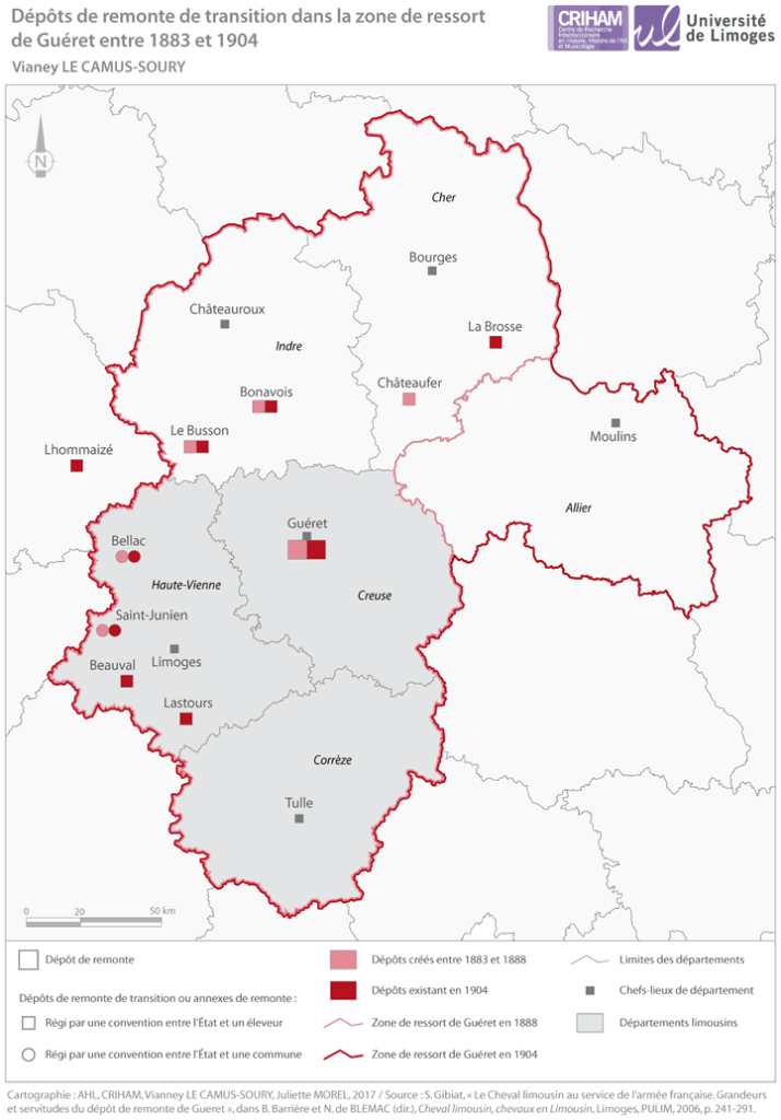 [1] Samuel GIBIAT, « Le cheval “limousin” au service de l’armée française. Grandeurs et servitudes du dépôt de remonte de Guéret. 1825-1927 », dans Cheval limousin. Chevaux en Limousin, Limoges : Pulim, 2006, p. 279.