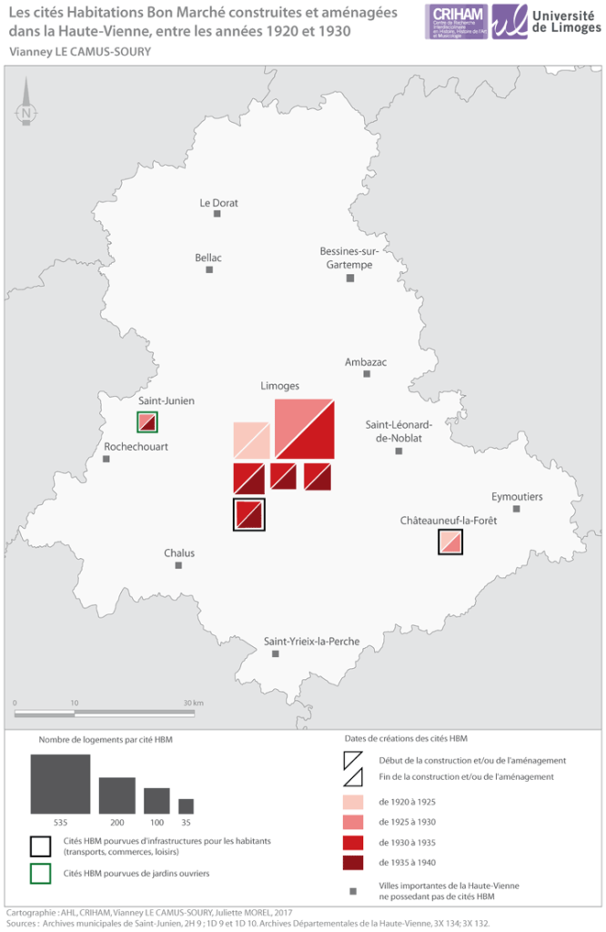 Carte 3 : Les cités Habitations Bon-Marché construites et aménagée dans la Haute-Vienne entre les années 1920 et 1930