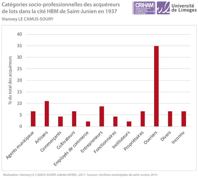 Graphique 2 : Catégories socio-professionnelles des acquéreurs de lots dans la cité HBM de Saint-Junien en 1937