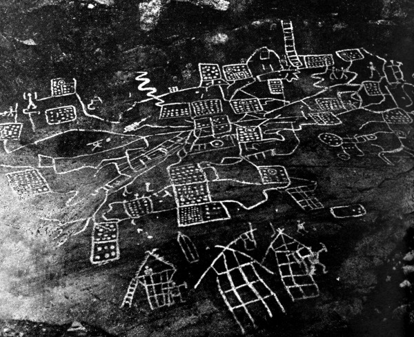 Si la carte est pour nous un usuel, c’est loin d’avoir toujours été le cas. Produit cher, demandant pour sa réalisation un gros investissement en temps et en moyens, elle est longtemps demeurée réservée à l’élite. Mais l’homme représente son espace depuis la protohistoire. En effet, même si peu de documents nous sont parvenus, quelques exemplaires attestent une production cartographique. C’est notamment le cas pour une gravure réalisée sur les parois de la grotte de Belinda (site de Val Camonina, en Italie du Nord) qui daterait de 2000 ans avant J.-C. et représenterait l’ancêtre d’un cadastre.