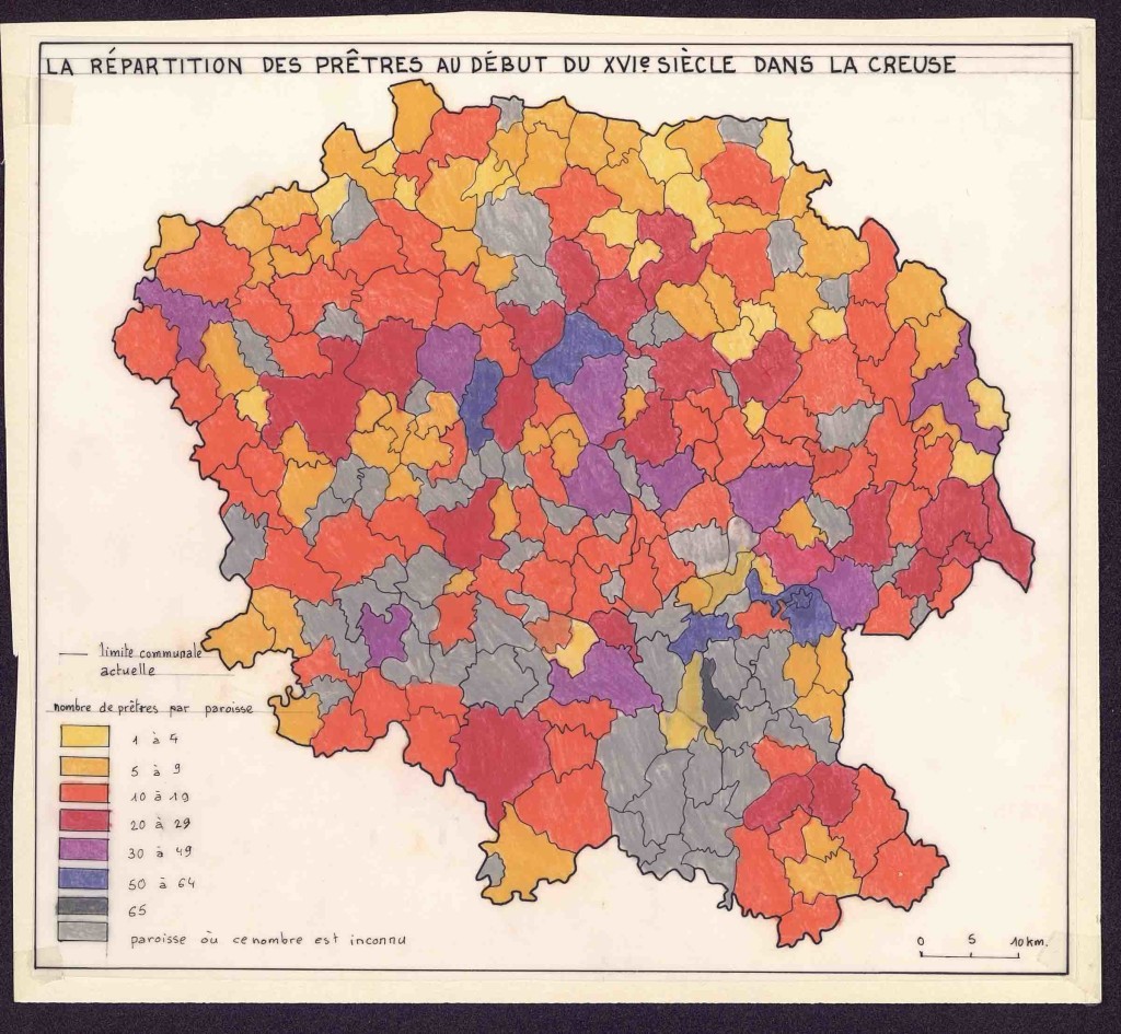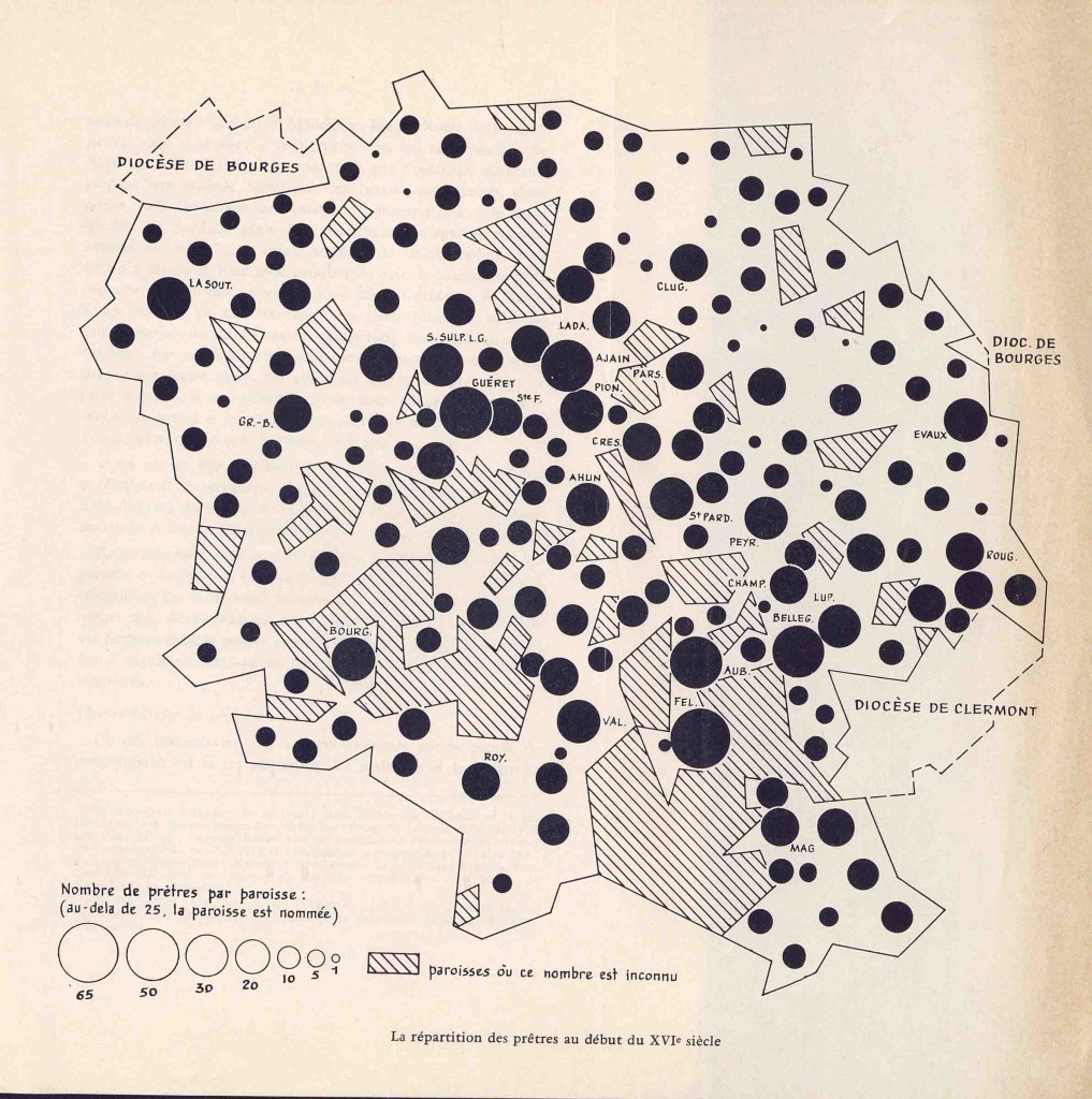 La Répartition des prêtres au début du XVIe siècle dans la Creuse. Atlas de Bautier (BFM)