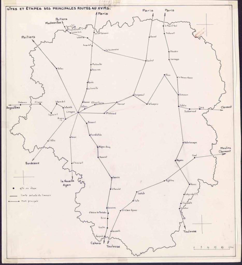 Gîtes et étapes des principales routes au XVIe s.. Atlas de Bautier (BFM)