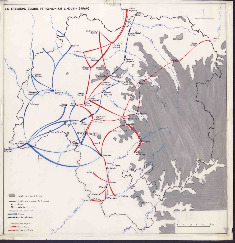La troisième guerre de religion en Limousin (1569). Atlas de Bautier (BFM).