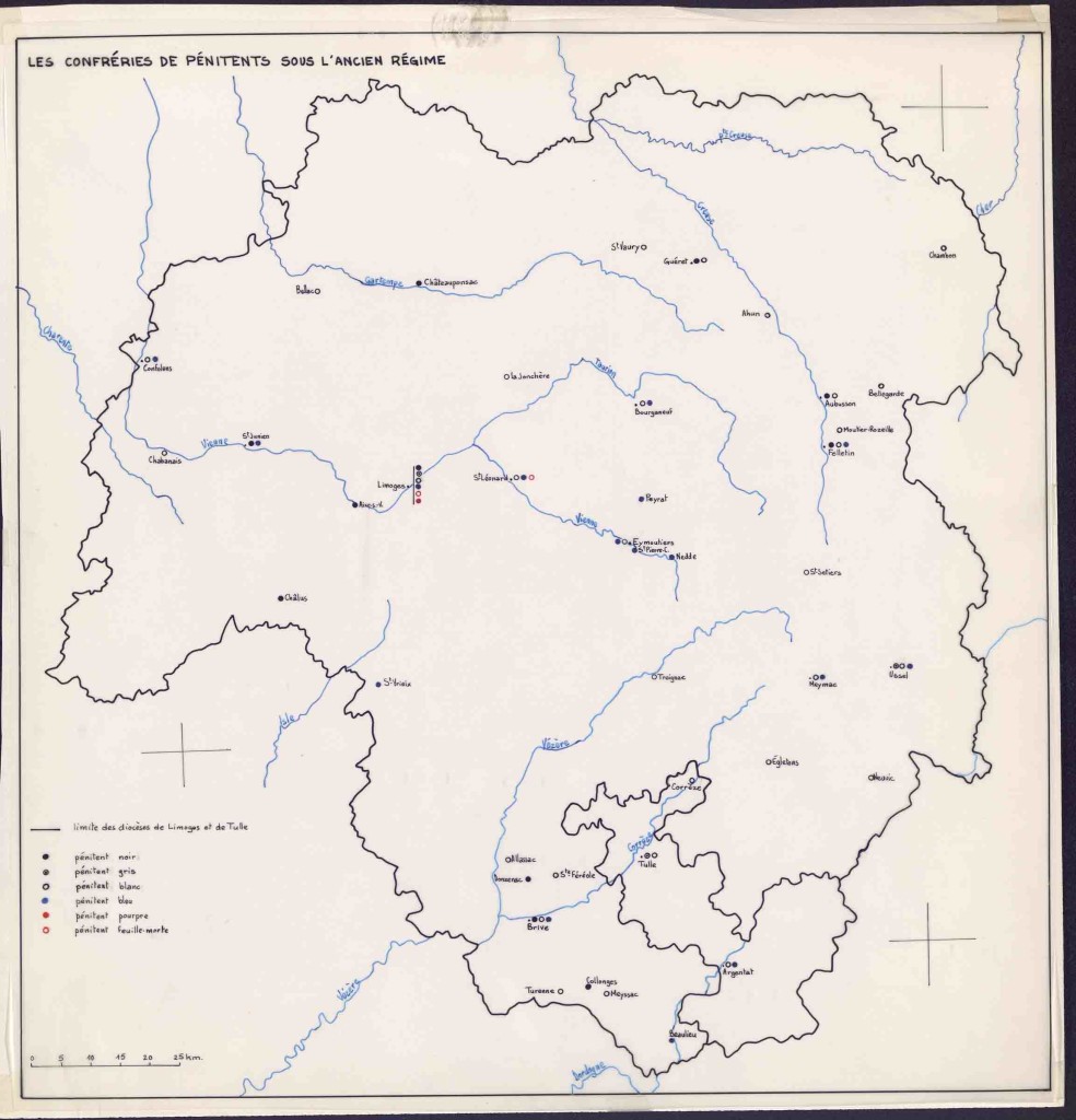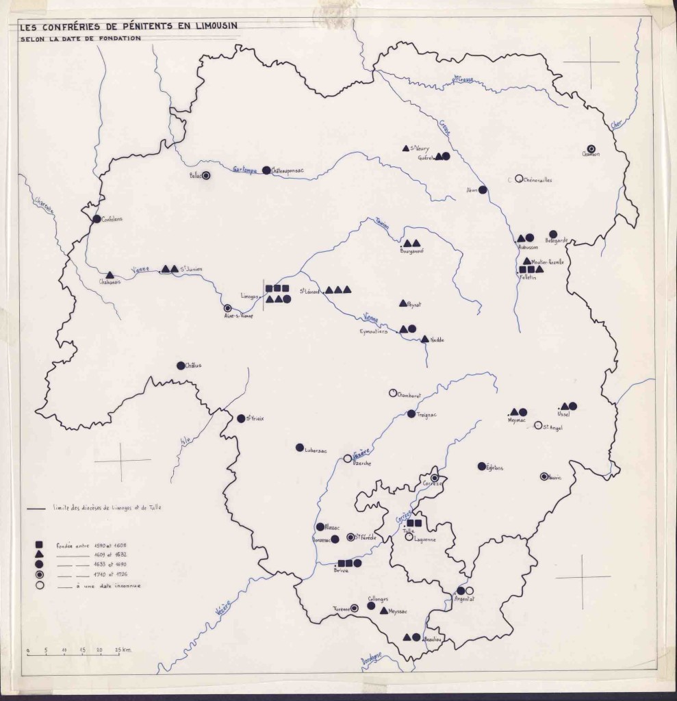 Les confréries de pénitents en Limousin selon la date de fondation. Atlas de Bautier (BFM).
