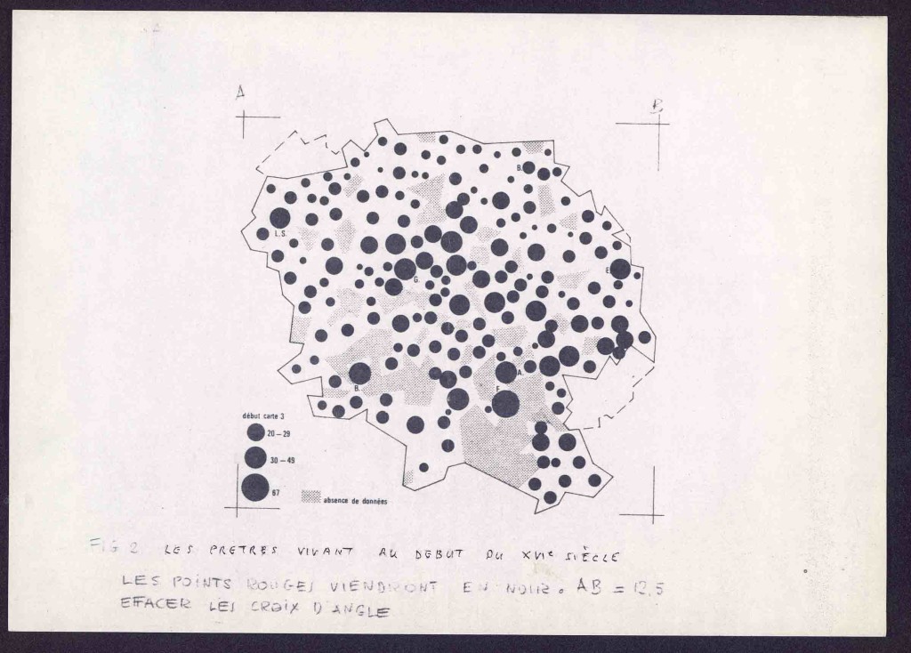 La répartition des prêtres au début du XVIe siècle. Atlas de Bautier (BFM).