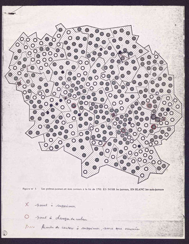 Les prêtres jureurs et non jureurs à la fin de 1791. Atlas de Bautier (BFM).