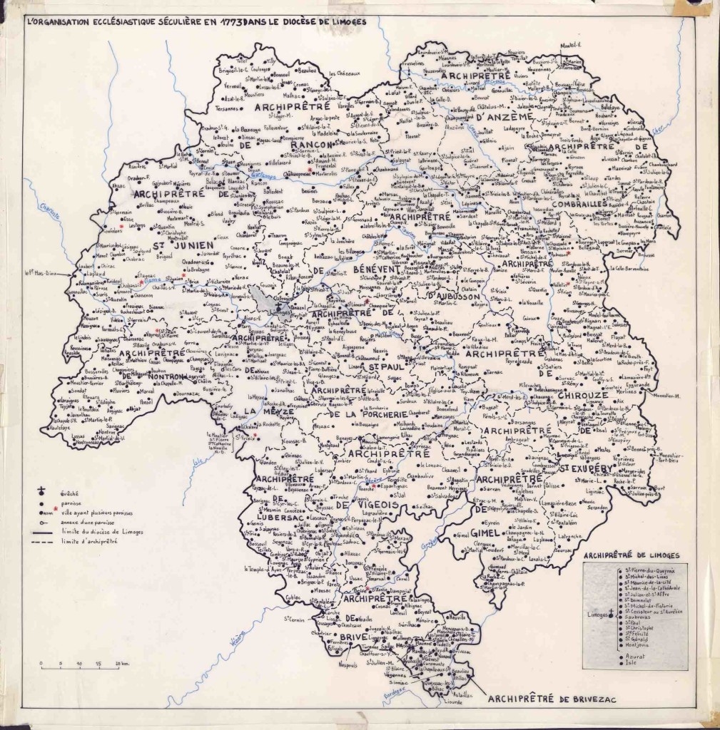 L'organisation ecclésiastique séculière en 1773 dans le diocèse de Limoges. Atlas de Bautier (BFM).