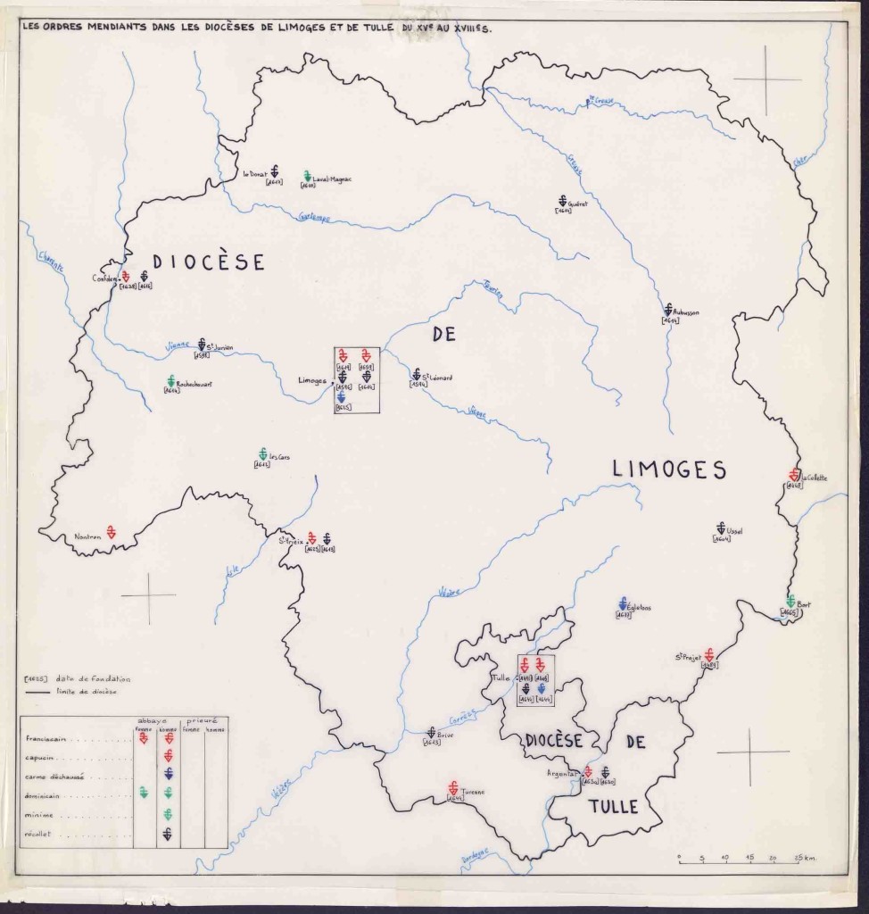 Les ordres mendiants dans les diocèses de Limoges et de Tulle du Xve au XVIIIe s. Atlas de Bautier (BFM).