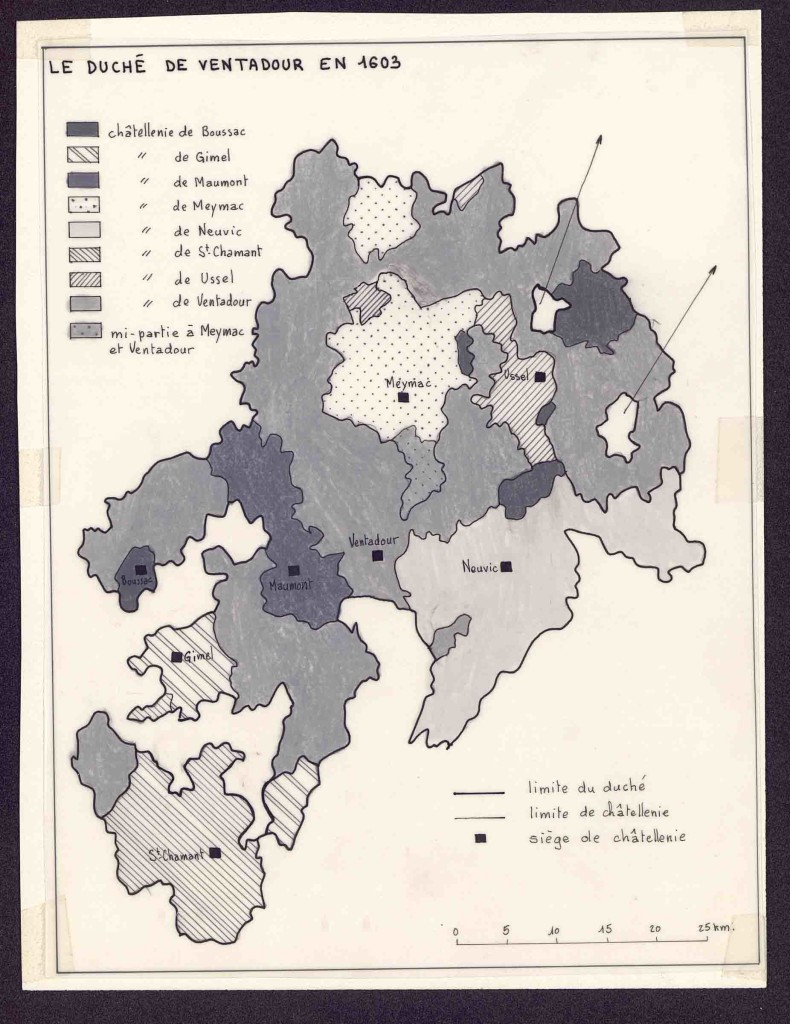 Le duché de Ventadour en 1603. Atlas de Bautier (BFM)
