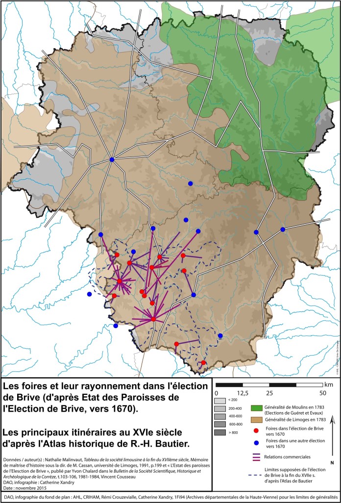 Les foires dans l'élection de Brive vers 1670 et itinéraires