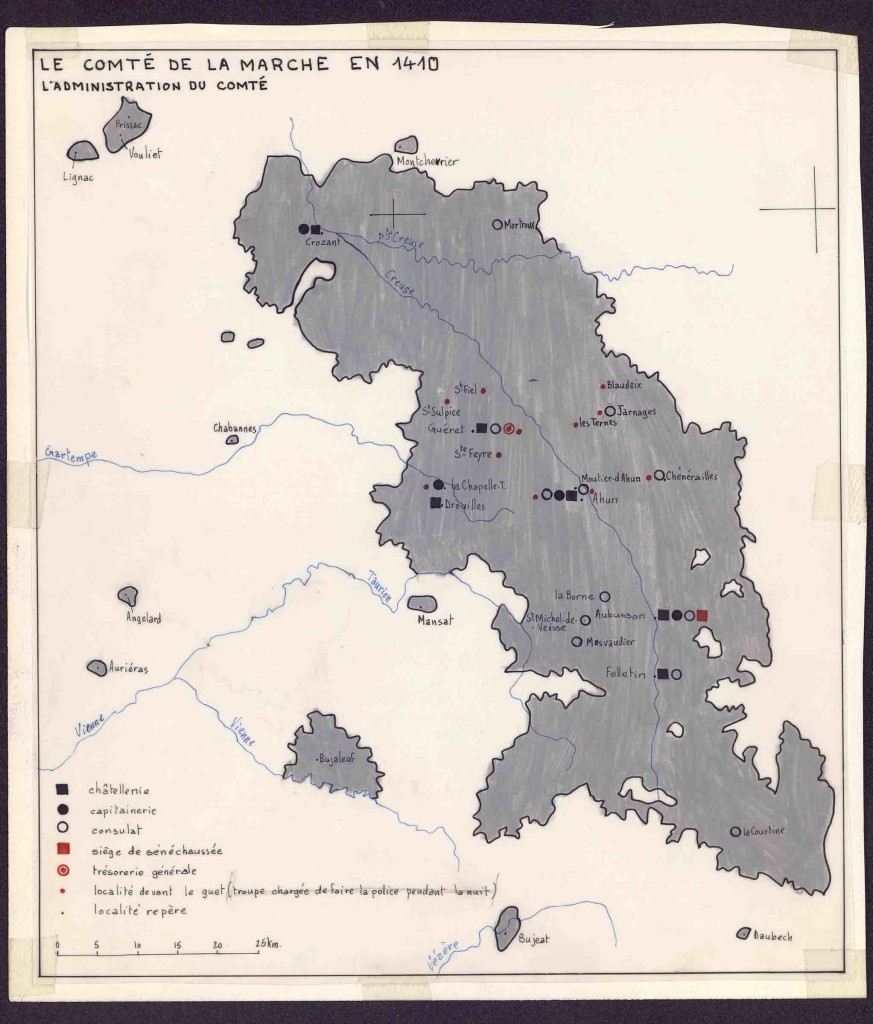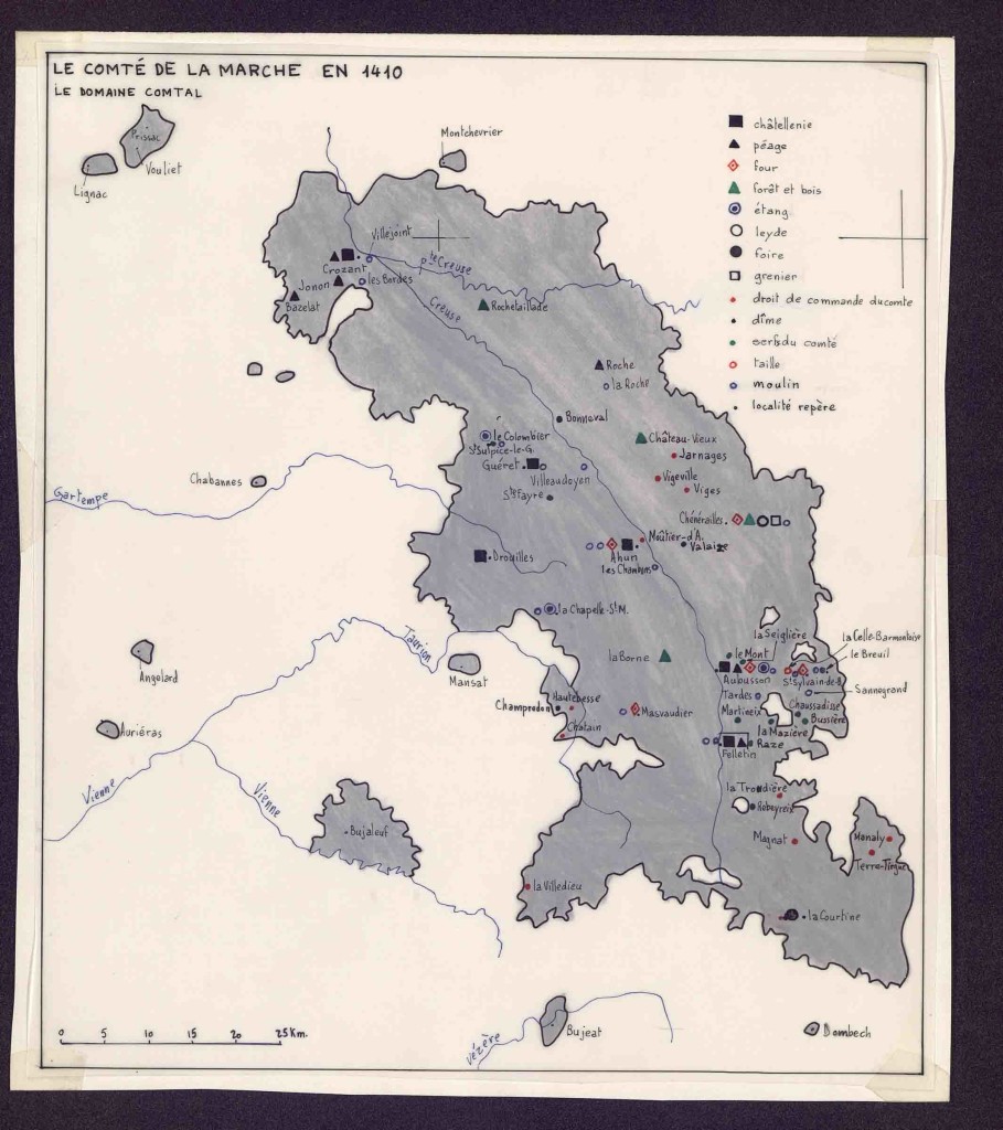 - 1327 : le comté de la Marche échoit à la famille de Bourbon dont il devient une sorte d’appanage donné aux cadets de cette famille.