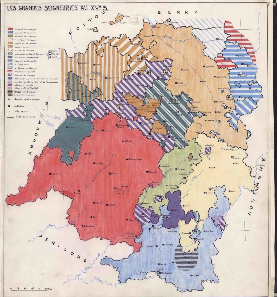 - D’un point de vue laïc, il n’y a plus unité administrative du Limousin même si cette unité demeure avec le diocèse de Limoges. Cette division entraîne beaucoup de guerres privées.