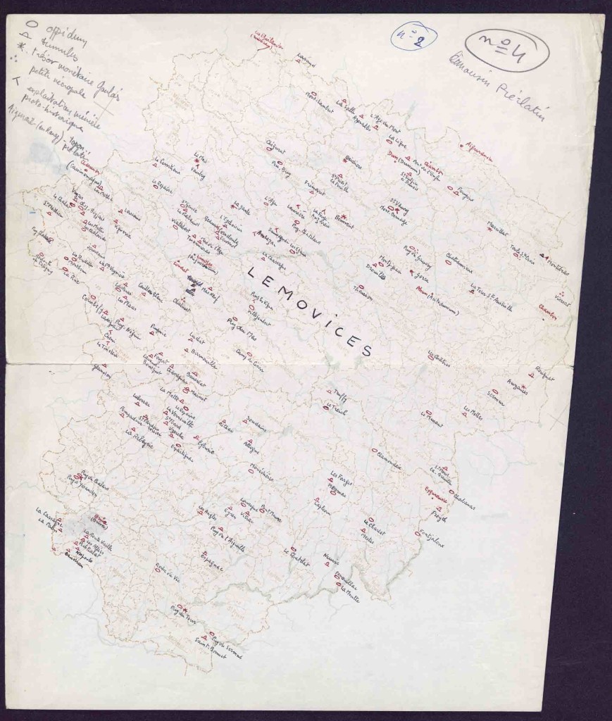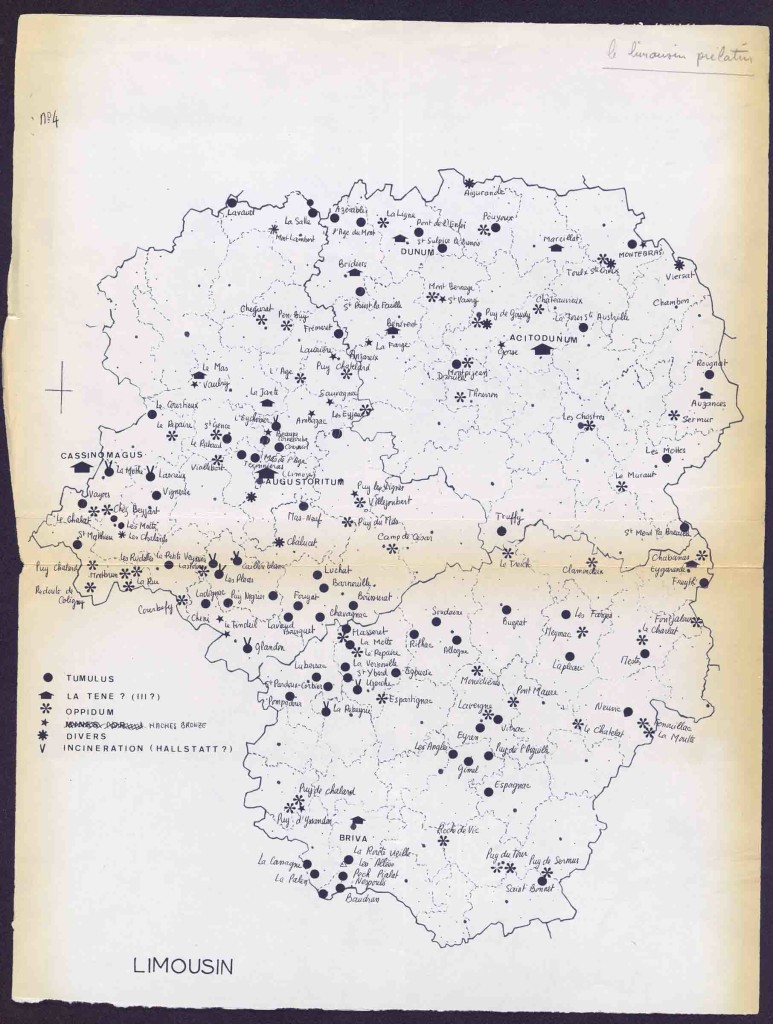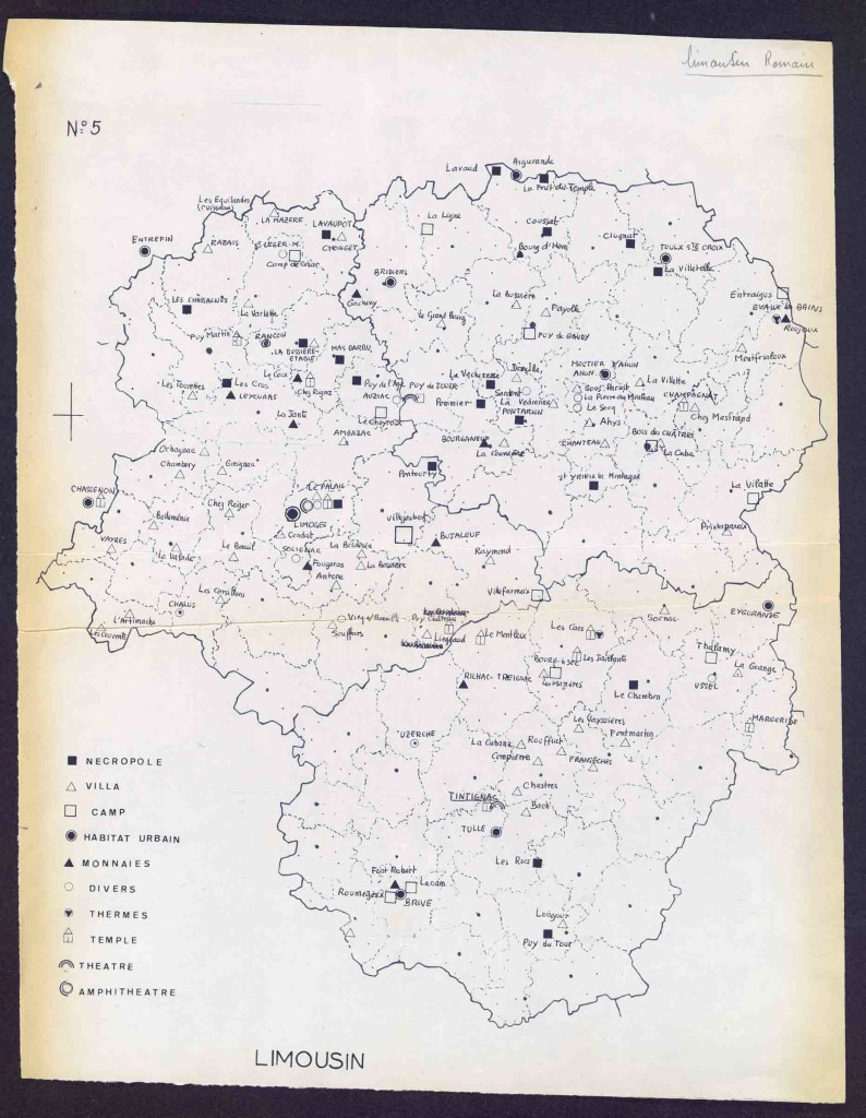 - Première mention de la civitas lémovique par César, en -52, dans ses commentaires. Son extension correspond à peu près à celle des diocèses de Limoges et de Tulle (départements de la Creuse, Corrèze et Haute-Vienne augmentés du Confolentais – Charente – et du Nontronnais – Dordogne -).