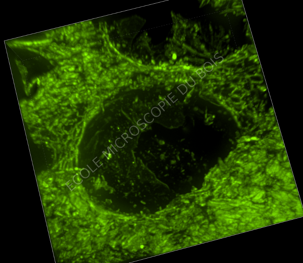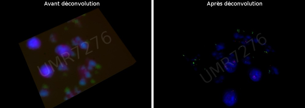 • Acquisitions en z puis déconvolution des images avec le logiciel Huygens disponible sur la plateforme.