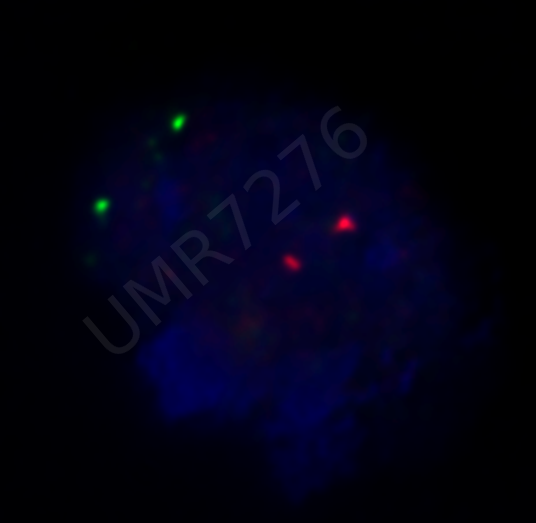 Bleu : noyau / Vert et Rouge : sonde IgL et IgH
