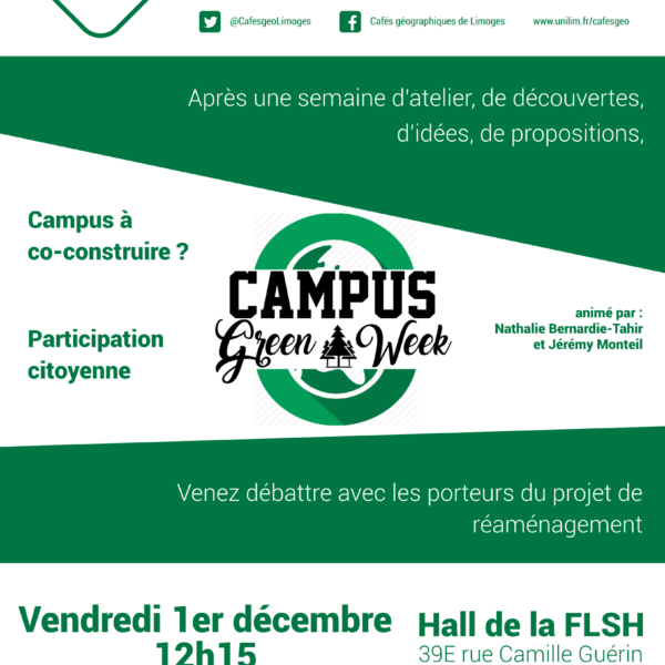 Plus d’informations ici : http://www.unilim.fr/cafesgeo/2017/11/24/campus-green-week-1ere-edition/