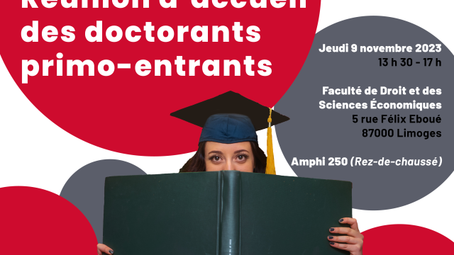 Cette rencontre sera l’occasion pour le Collège des Écoles Doctorales de présenter l’environnement de la formation doctorale aux doctorants primo-entrants de l’Université de Limoges, ainsi que les interlocuteurs et les équipes qui les accompagneront au fil de leur parcours doctoral.