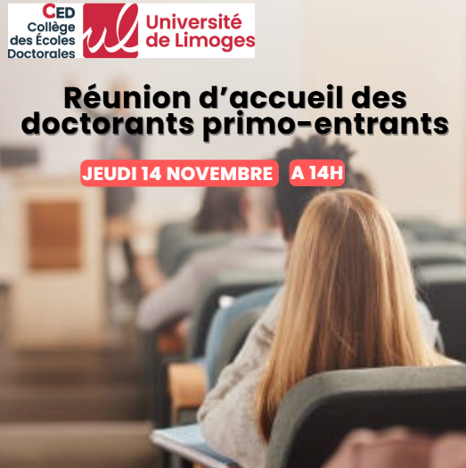 Nous organisons en collaboration avec les 4 Écoles thématiques, ce moment d’échange et de convivialité qui aura pour objectif de souhaiter la bienvenue aux nouveaux doctorants et de leur présenter l’environnement de la formation doctorale, les interlocuteurs et les équipes qui accompagnent les jeunes chercheurs dans leur parcours doctoral à l’Université de Limoges.