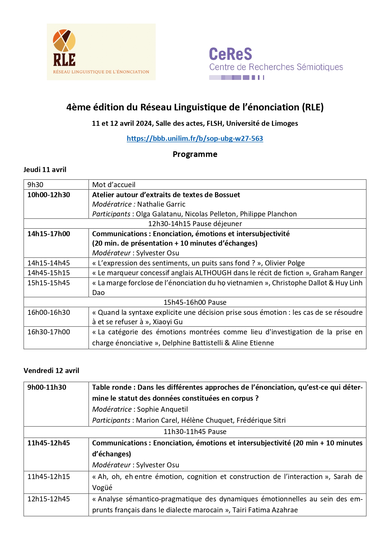 4ème édition du Réseau Linguistique de l’énonciation (RLE)