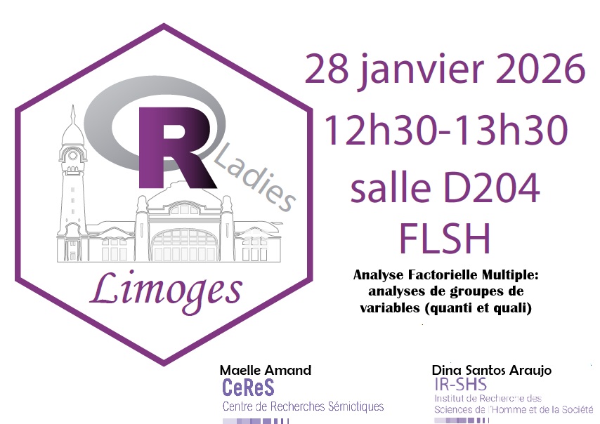 Présente dans 66 pays, 236 villes, plus de 4000 évènements organisés chaque année, R-ladies a désormais une antenne à Limoges grâce à l’implication des deux enthousiastes des humanités numériques : Maëlle AMAND chercheuse en linguistique et Dina ARAUJO, ingénieure de recherche en analyses de données.