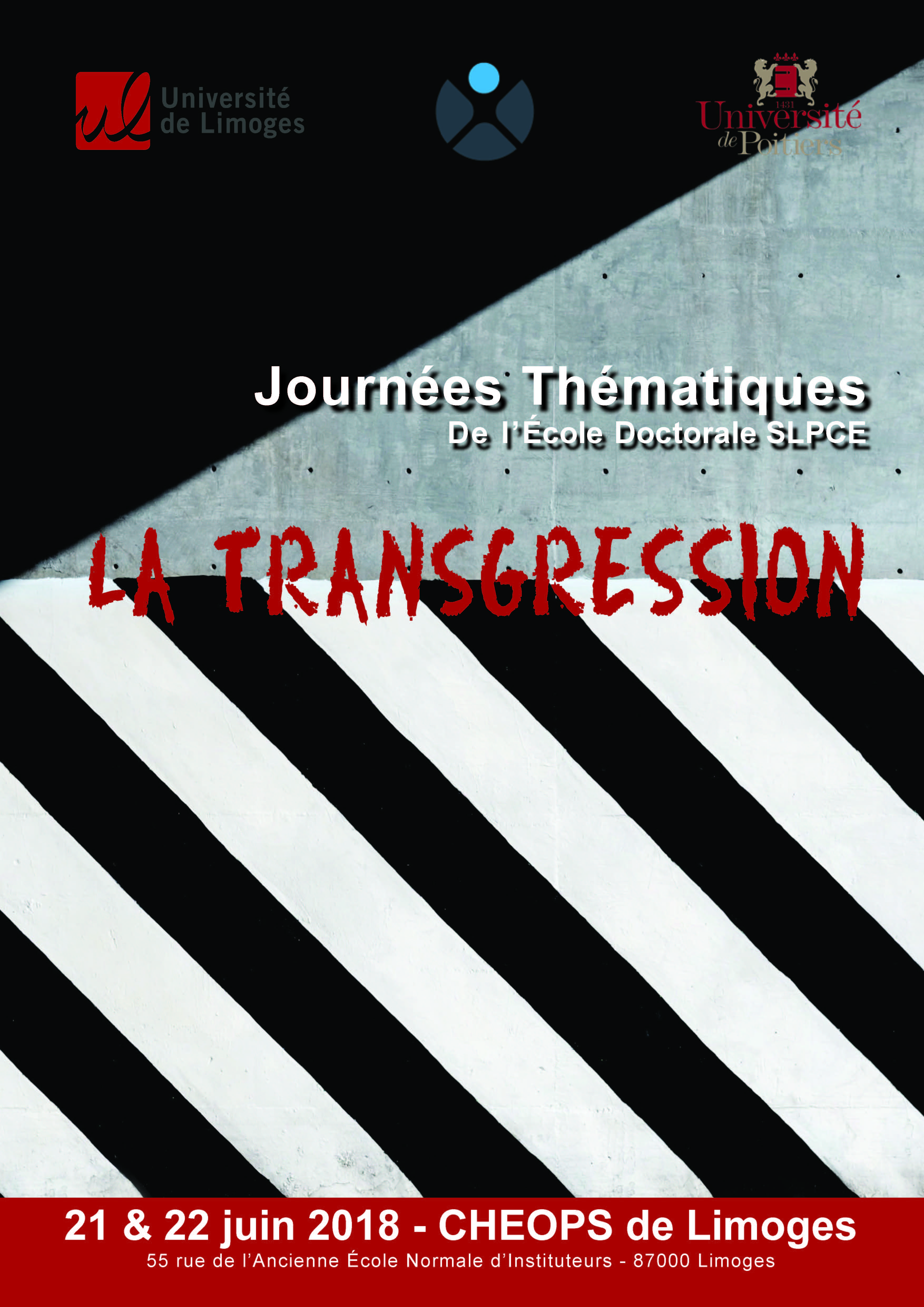 Le CeReS organise le 21 et 22 juin 2018 les Journées Thématiques de l’Ecole doctorale SLPCE (COMUE Léonard de Vinci). Le thème de ces journées est « la Transgression ».