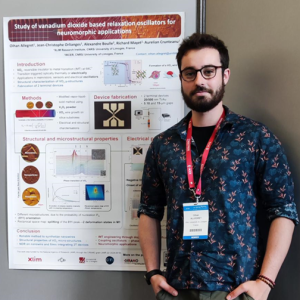 « Study of vanadium dioxide based relaxation oscillators for neuromorphic applications« , Oihan Allegret, Jean-Christophe Orlianges, Alexandre Boulle, Richard Mayet, Aurelian Crunteanu, EMRS 2024, Symposium U, Poster session (lien vers le résumé)