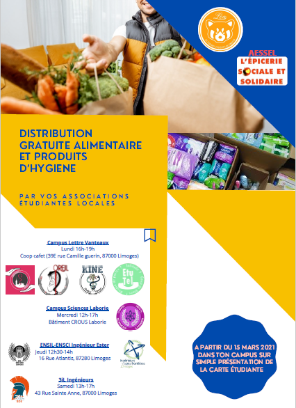 - Le BDE Limouzi’STAPS met en place des distributions de produits alimentaires, hygiéniques, de vêtements et de cartes Internet :