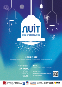 L’Université de Limoges organise la Nuit des Chercheurs (NDC) le vendredi 27 septembre 2024 à partir de 18h30 à la BFM, 2 pl Aimé Césaire, à Limoges.