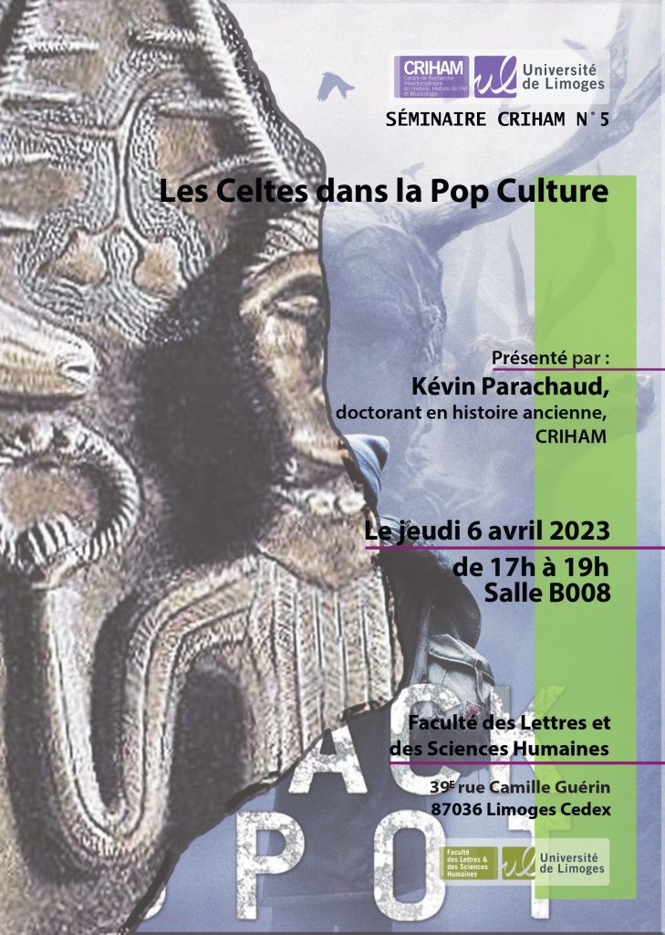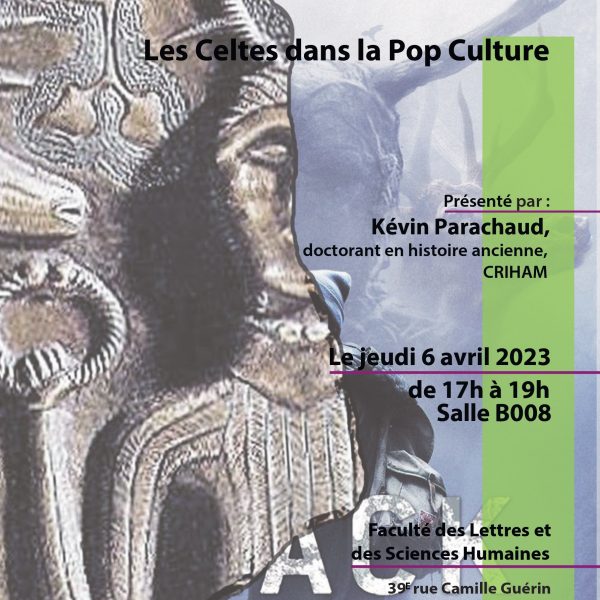 Catégories : Séminaire 2022-2023 / Séminaire CRIHAM Séminaire CRIHAM N°5 | Les Celtes dans la Pop Culture Jeudi 6 avril 2023 | De 17h à 19h | Faculté des Lettres et Sciences Séminaire CRIHAM N°5 | Les Celtes dans la Pop Culture Présenté par Kévin Parachaud, doctorant en histoire ancienne, CRIHAM. Faculté des Lettres et des Sciences Humaines 39E rue Camille Guérin 87036 LIMOGES Cedex Tél. +33 (5) 05 55 43 56 00 université ouverte source de réussites