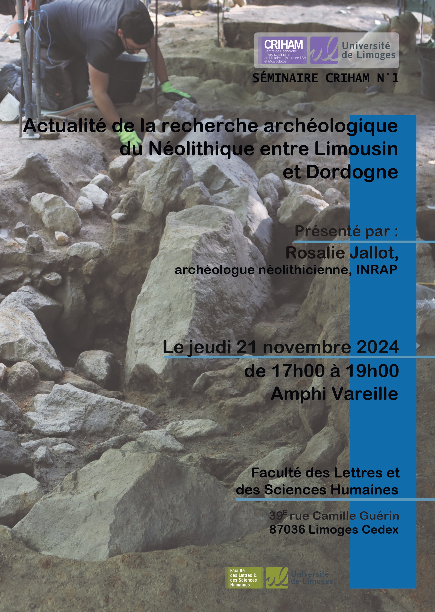 Séminaire CRIHAM N°1 | Actualité de la recherche archéologique du Néolithique entre Limousin et Dordogne