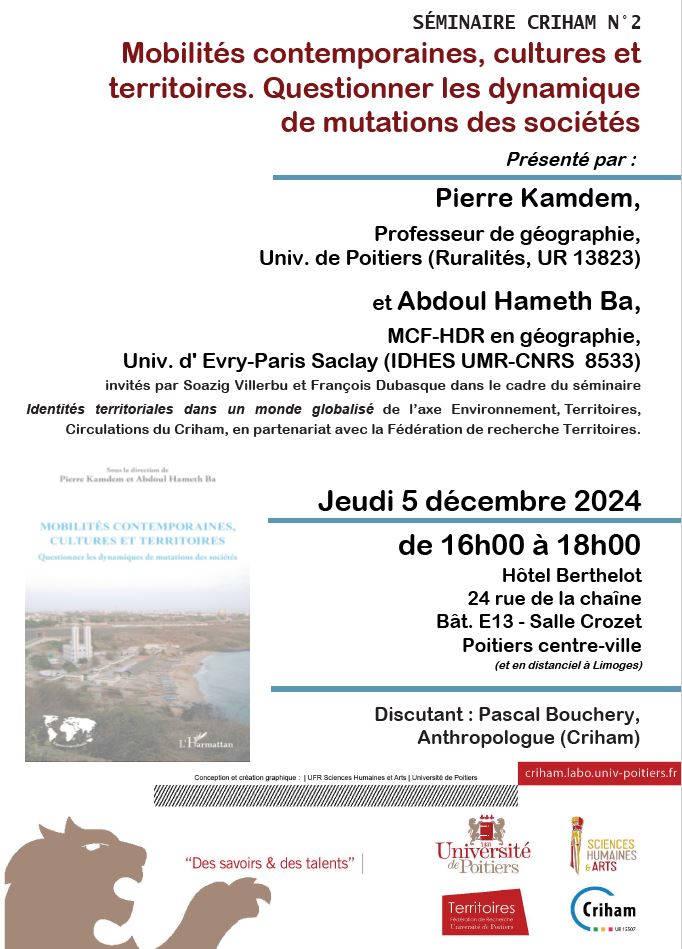 Séminaire CRIHAM N°2 | Mobilités contemporaines, cultures et territoires. Questionner les dynamique de mutations des sociétés