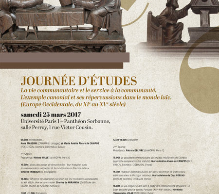 Cette Journée d'études s'intègre dan sle projet de recherche post-doctorale financé par la Fondation Portugaise pour la Science et la Technologie (SFRH/BPD/100765/2014). Cette réunion entre dans les projets du CHSC - UID/HIS/00311/2013 et du CIDEHUS - UID/HIS/0057/2013 et est cofinancée par les fonds européens FEDER/COMPETE 2020 (POCI-01-0145-FED-ER-007702). Elle est appuyée par le Centre de Recherches Interdisciplinaires en Histoire, Histoire de l'Art et Musicologie - EA 4270 CRIHAM - Université de Limoges et le Laboratoire de Médiéviste Occidentale de Paris - UMR 8589 - CNRS - Université de Paris I.