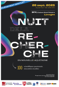 Le vendredi 26 septembre 2025, de 18h30 à minuit, la Bibliothèque Francophone Multimédia de Limoges ouvrira ses portes pour accueillir La Nuit de la Recherche, un événement unique qui plonge le grand public au coeur des sciences et de la recherche. Organisée conjointement par l’Université de Limoges et Récréasciences, cette soirée conviviale et interactive s’étendra également en Creuse et en Corrèze, offrant ainsi une expérience scientifique accessible au grand public et aux scolaires en Limousin.