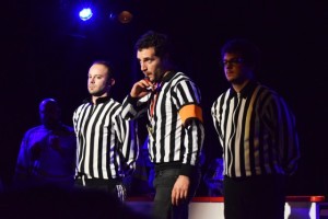 « L’improvisation, c’est l’art d’écrire, mettre en scène et interpréter des situations théâtrales originales en temps réel, devant un public qui décide par son vote quelle équipe a été la plus enthousiasmante. Issue du Québec, cette manière originale de pratiquer le théâtre y associe les règles du hockey sur glace, pour former un cocktail jouissif et détonnant ! ».