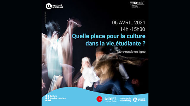 L’Université de Lorraine organise une table-ronde en ligne qui réunira quelques acteurs de la culture et de la vie universitaire pour s’interroger sur la place de la culture dans la vie étudiante.