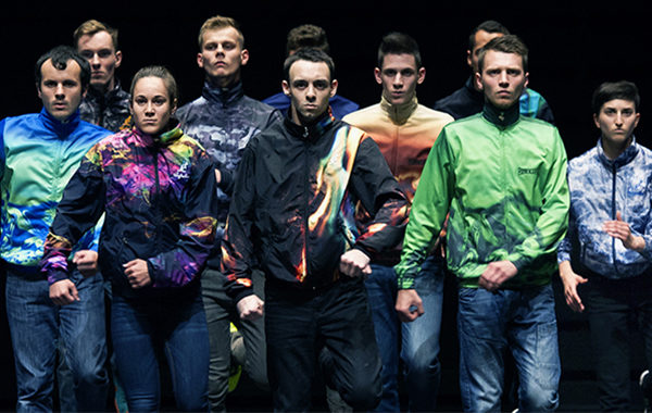 Onze danseurs européens et québécois – recrutés sur Facebook par le collectif – pratiquent le jumpstyle, une danse individuelle qui consiste en un enchaînement de sauts réalisés quasiment sur place. Issue de la scène techno hardcore et popularisée via Youtube et lors de battles, cette danse arrive aujourd’hui sur les plateaux de théâtre. Chaque séquence dure environ 25 secondes, et, à chaque solo, une force émane du danseur. C’est explosif, puissant, engagé et plein d’énergie.