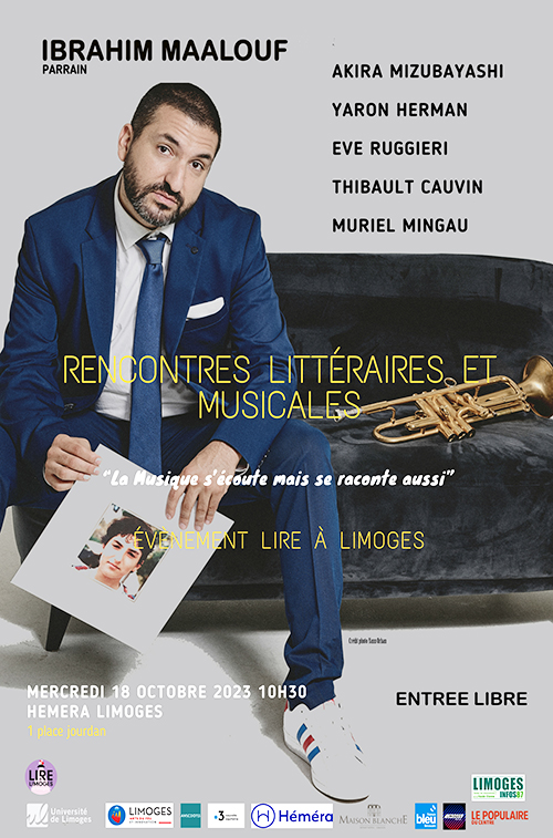 En période de rentrée littéraire 2023, l’Université, Service Culturel propose la 4ème Edition des Rencontres Littéraires et musicales « La musique s’écoute mais se raconte aussi » évènement de Lire à Limoges, parrainé en 2023 par Ibrahim Maalouf.
