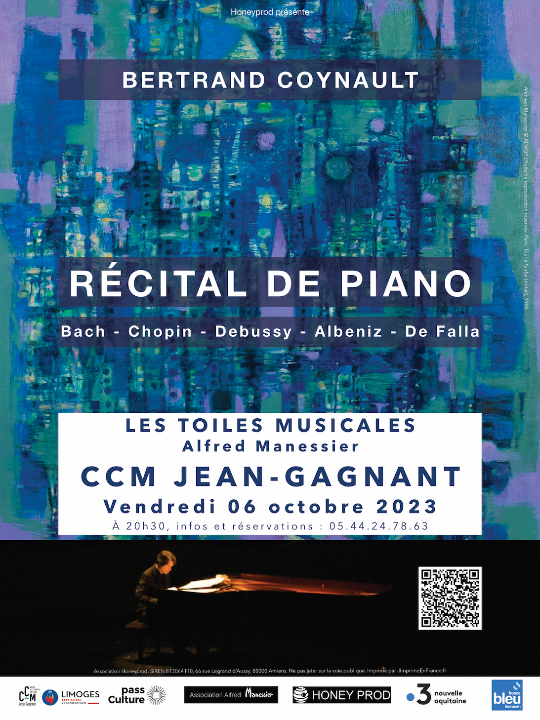 « Alfred Manessier, Peindre la lumière » est le quatrième opus de la série des Toiles Musicales, concept mettant en relation la musique et la peinture. Le spectacle est un éclairage sur l’Œuvre du célèbre peintre français, figure majeure de la Nouvelle École de Paris, par le pianiste Bertrand Coynault.