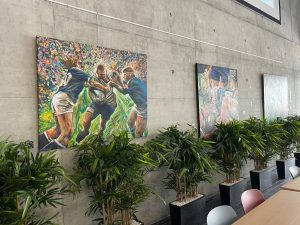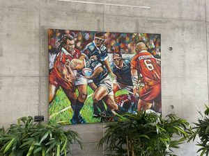 Exposition des œuvres de Reg Alcorn intitulée « Art of Rugby » dans le cadre des JO 2024.