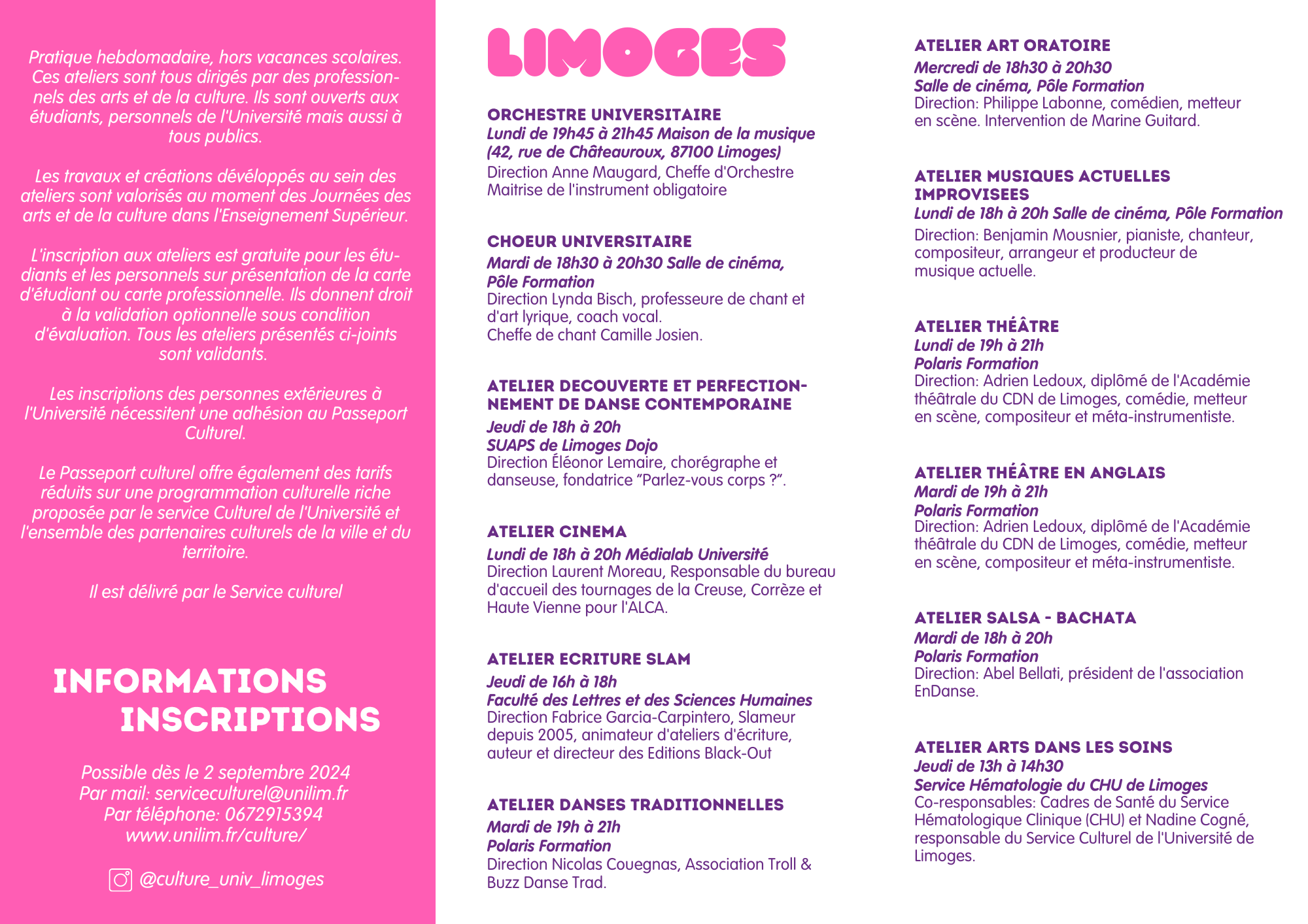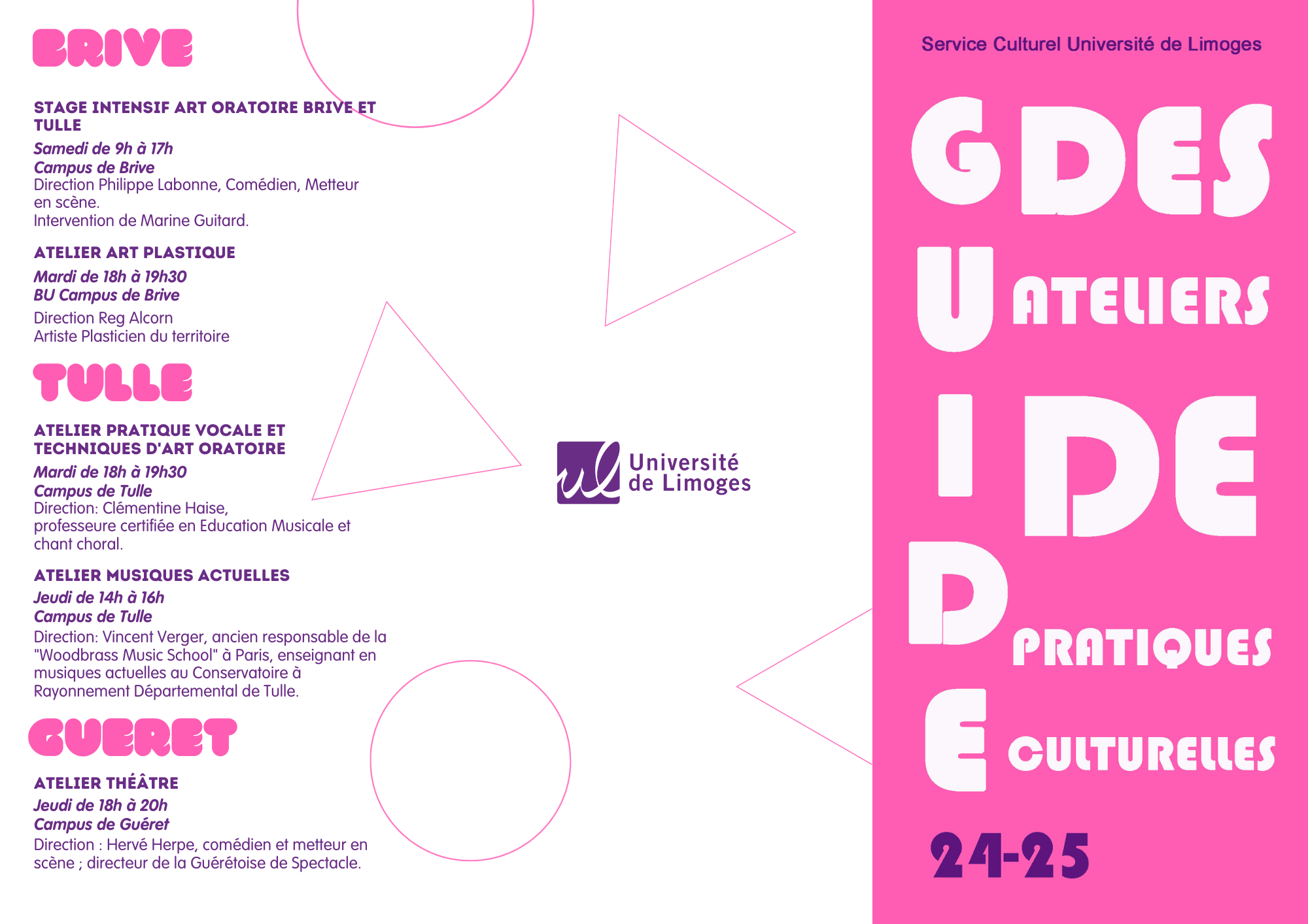Les ateliers de pratiques culturelles sont ouverts aux étudiants, aux personnels et sont également ouverts à tous publics. Inscrivez vous !