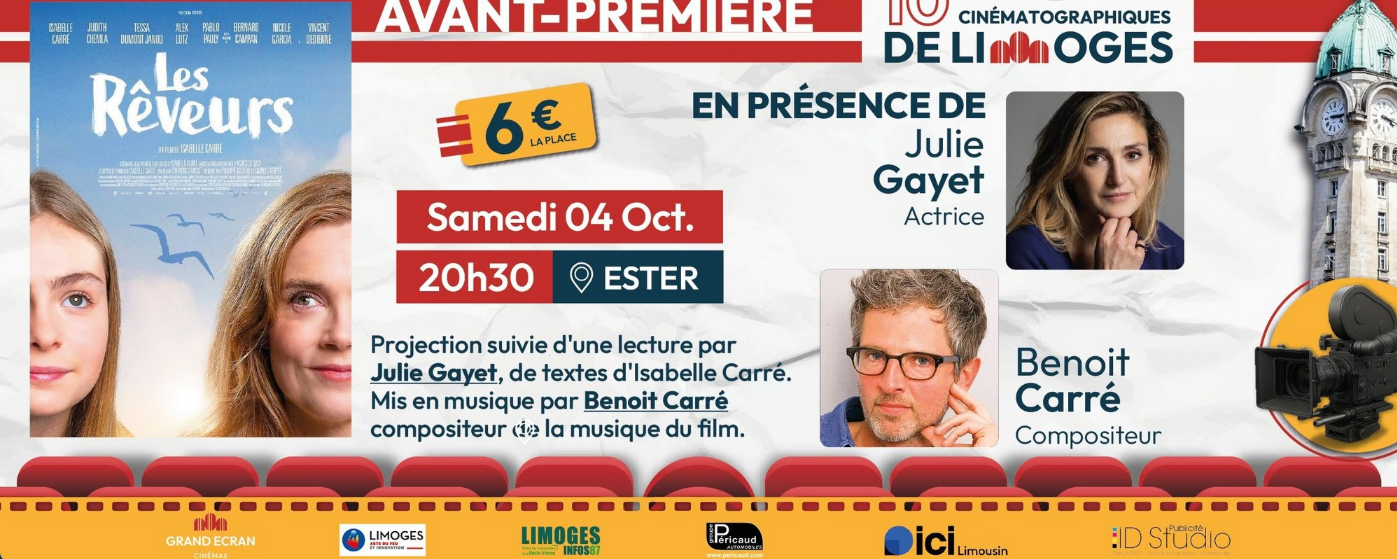 Avant-première exceptionnelle du film « LES REVEURS » d’Isabelle CARRE en ouverture des 10èmes Rencontres cinématographiques de Limoges.