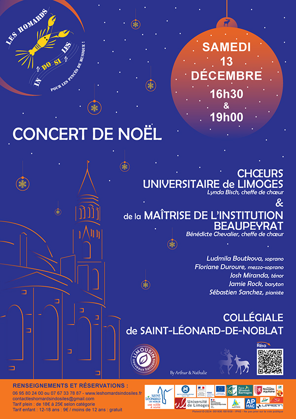 Le temps d’un concert, venez renouer avec l’esprit de Noël que nos choristes du Chœur Universitaire de Limoges, de l’Ensemble vocal étudiant, de la Maîtrise de l’Institution Beaupeyrat et nos solistes chanteront !