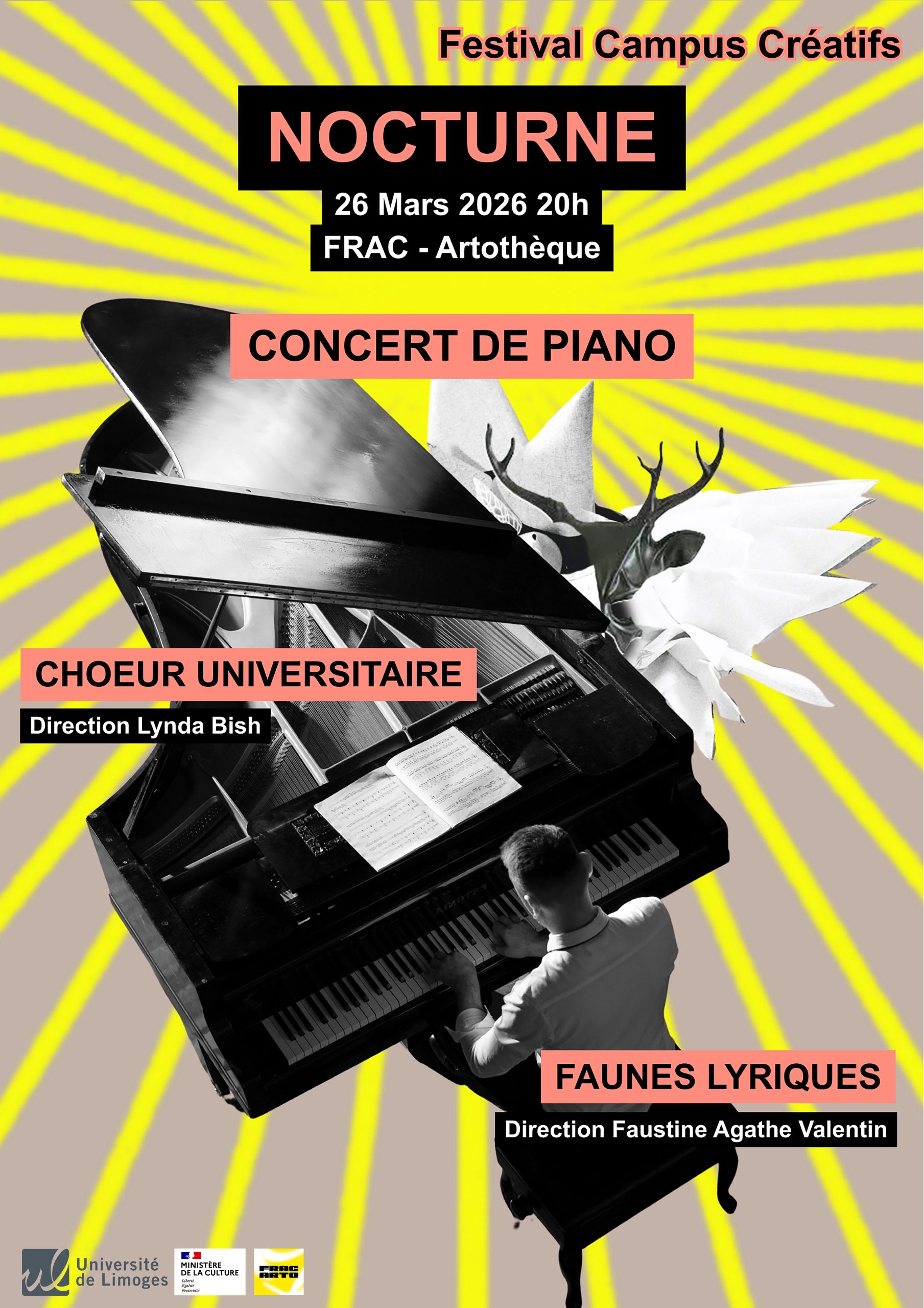 Dans le cadre du Festival Campus Créatif 2026, le service culturel propose un concert de piano de Dorian Renaud étudiant à l’Ensil-Ensci et lauréat du challenge musical 2026. (2ème prix)