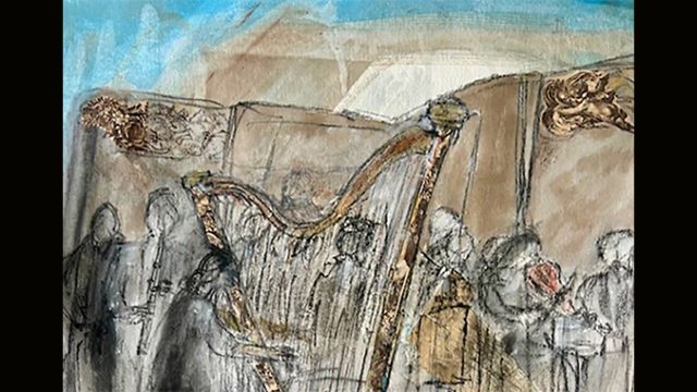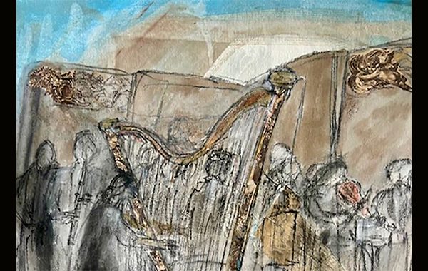 Ce qui l’a conduit à utiliser le verre comme support, dans un premier temps en utilisant la technique du fixé sur toute la surface du verre avec des techniques mélangées, acrylique, pastels gras, poudre d’or ou peinture métallique.