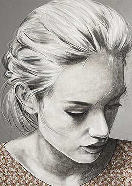 Mais ce sont les noirs et les gris qui s’imposent dans ses toiles et créent une atmosphère austère et angoissante avec ces corps repliés sur eux mêmes, raides, sans mouvement, enfermés dans leurs pensées. Ces femmes et ces hommes, tous jeunes, plutôt que des êtres humains sont des attitudes, en marche vers un lieu indéfini. Serait-ce le reflet de notre société ?