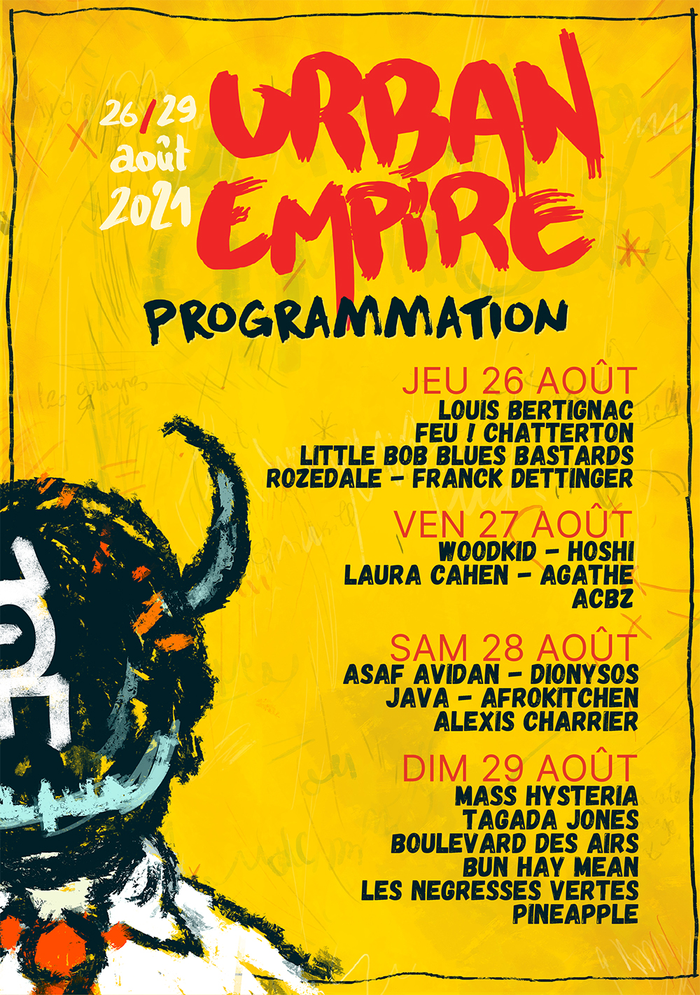 Catégories : FESTIVAL URBAN EMPIRE 26 AU 29 AOUT 2021 Détails Début: 26 août 2021, 12 h 00 min Fin: 5 septembre 2021, 0 h 30 min Présentation